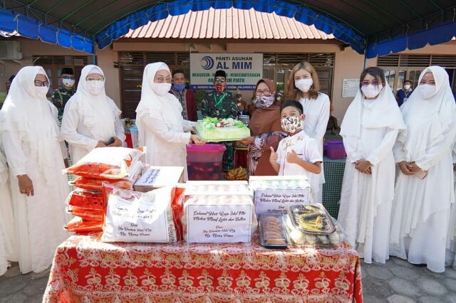 Sedangkan Pramono selaku Pengurus Panti Asuhan Al Mim mengucapkan terima kasih kepada prajurit Korem 102/Pjg yang telah sudi berbagi kebahagian dengan para anak yatim di panti.
