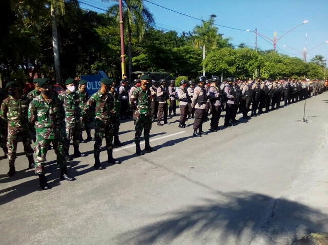 Palangka Raya, Jum’at (12/6/20) – Personel Kodim 1016/Palangka Raya yang tergabung dalam Tim Gugus Tugas Covid-19 Kota Palangka Raya melaksanakan apel kesiapsiagaan menuju new normal. Apel diikuti sekitar 200 personel gabungan dari TNI, Polri, Satpol PP, Dishub, BNPB, Kominfo, dan instansi lainnya. Bertempat di halaman Pos Siaga Covid-19 Bundaran Besar, Kota Palangka Raya.