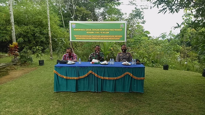 Dengan menerepkan pendisiplinan protokol kesehatan, komunikasi sosial yang dilakukan Koramil 19/Klm mengusung tema “Bergandengan Tangan Membangun Negeri Memperkokoh Persatuan dan Kesatuan”.