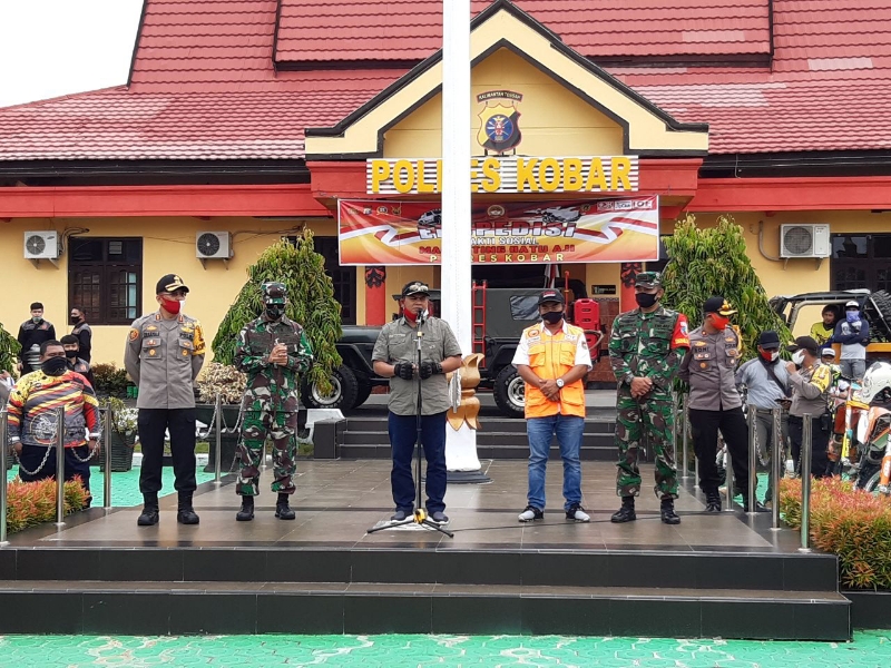 Kotawaringin Barat, Minggu (28/6/20) – Dandim 1014/Pbn Letkol Inf Yudi Rianto Ratu bersama Komunitas Trabas dan IOF Kab. Kobar, Sabtu kemarin mengikuti kegiatan Ekspedisi Bhakti Sosial Marunting Batu Aji yang di selenggarakan oleh Polres Kobar di Desa Pangkalan Satu, Kecamatan Kumai, Kabupaten Kotawaringin Barat. Kegiatan tersebut dalam rangka Hari Bhayangkara Ke – 74.