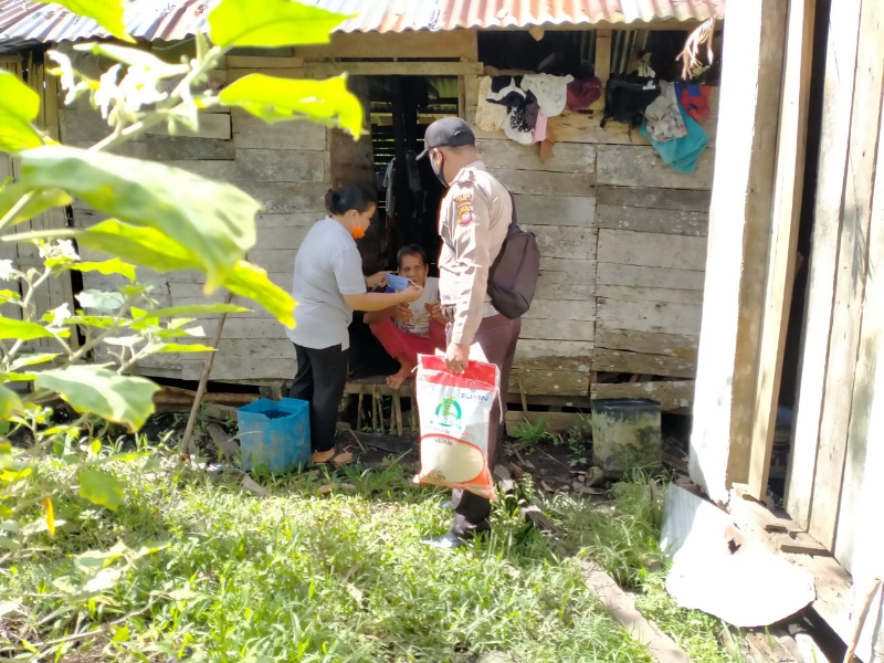 Bhabinkamtibmas Polsek Menjalin Bripka H. Riyanto menyampaikan bahwa bantuan tersebut ia berikan kepada salah satu warga binaannya yang lansia tuna netra yaitu Bapak Sehat (70) yang tinggal bersama istrinya, dimana penghasilan sehari-hari dari hasil berjualan sayur istri yang di cari di hutan.