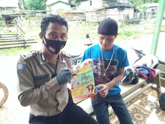 KUALA BEHE-Dalam rangka mensosialisasikan tentang kepatuhan kepada kebijakan Pemerintah dalam penanganan penyebaran Virus Corona/Covid-19, Bhabinkamtibmas Polsek Kuala Behe Bripka Anuar Sadat berikan imbauan kepada pemilik warung yang ada di Kecamatan Kuala Behe agar bisa mematuhi aturan pemerintah tentang pandemi covid 19 di saat menjelang fase new normal,supaya bisa cepat berakhir dan juga jaga kesehatan sesuai Protokol dengan standar kesehatan. Selasa (30/06/20)