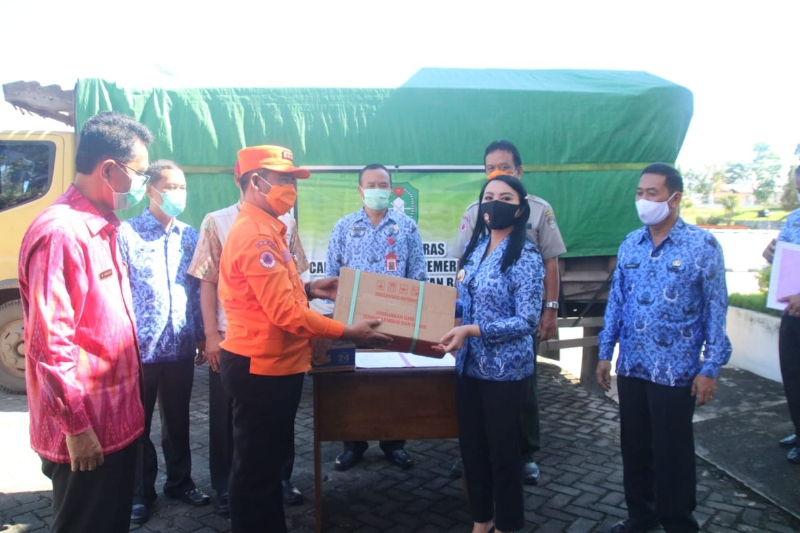 Penyerahan bantuan ini dihadiri oleh perwakilan tiga instansi berbeda di jajaran pemerintah Provinsi Kalimantan Barat yaitu meliputi Kepala Dinas Pangan, Peternakan dan Kesehatan Hewan Provinsi Kalimantan Barat Ir. Muhammad Munsif, M.M, Kepala Bidang Rehabilitasi, Rekonstruksi BPBD Provinsi Kalimantan Barat Eko Supriyanto, Kepala Seksi Jaminan Sosial pada Dinas Sosial Provinsi Kalimantan Barat Darsono dengan menyerahkan bantuan secara langsung kepada Bupati Landak.