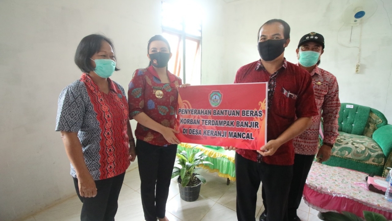 Bupati Landak menyampaikan bahwa bantuan yang diberikan ini salah satu bentuk perhatian dari pemerintah kepada masyarakat yang terkena musibah banjir.
