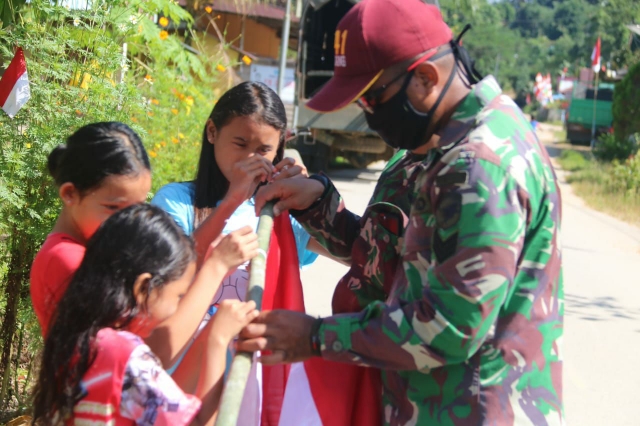 Selain membagikan bendera merah putih kepada masyarakat perbatasan, personel dari Pos Kout dan pos Koki SSK ll yang dipimpin Perwira Topografi, Lettu Ctp Rahmat bersama beberapa anggota, juga mengajak kepada masyarakat untuk mengibarkan bendera merah putih selama 1 bulan penuh.