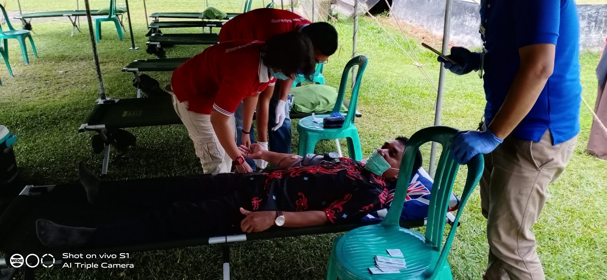 Tampak Kades Raja Zulkarnain sedang mendonorkan darahnya dibagian tim tenaga medis PMI kabupaten Landak.