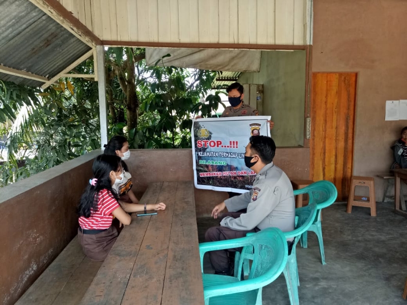 Anggota patroli Polsek Menyuke Bripka Yusliadi bersama Brigpol Miro, melakukan kampanye dan sambang pencegahan karhutla kepada warga di Desa Darit Kecamatan Menyuke, Sabtu (22/08/2020).