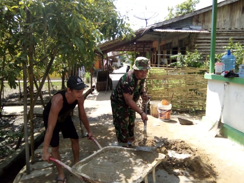 Sambas, Senin (7/9/20) – Dalam rangka menjaga dan menciptakan lingkungan yang sehat, bersih dan indah Babinsa Segarau Parit, Koramil Tebas, Serka Sugiarto bersama warga pada hari Minggu kemarin bergotong royong membuat tempat sampah di Desa Segarau Parit, Kecamatan Tebas, Kabupaten Sambas.