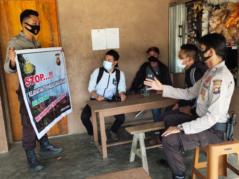 Seperti yang dilakukan Bripka Yusliadi dan Brigpol Miro langsung turun kelapangan, untuk mensosialisasikan larangan membakar hutan dan lahan, serta sanksi hukum bagi pelaku yang dengan sengaja melakukan karhutla.