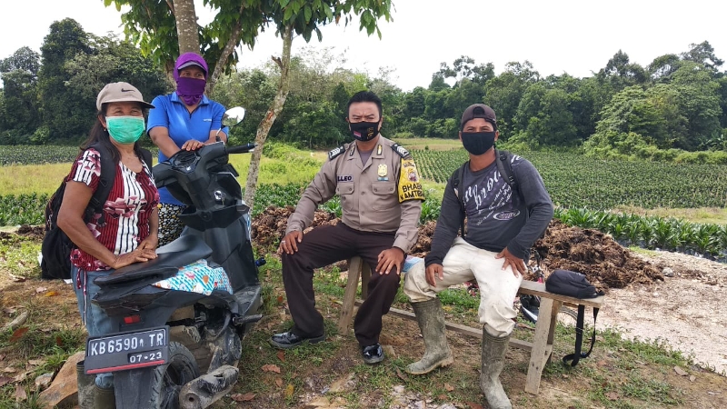 MENYUKE-Bhabinkamtibmas Polsek Menyuke Polres Landak Bripka Ewaldus Leo, melaksanakan sambang memberikan imbauan kepada warga di pemukiman yang berada di wilayah Kecamatan Menyuke, Senin (21/09/2020)