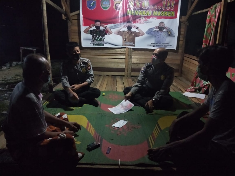 NGABANG – AIPDA Suriansyah selaku Kanit Bintibmas dan BRIPKA Karmin selaku Kaur Mintu mengunjungi Poskamling yang berada di Pal 4 Desa. Amboyo Inti, Kecamatan Ngabang sekaligus imbauan. Sabtu (10/10/2020)