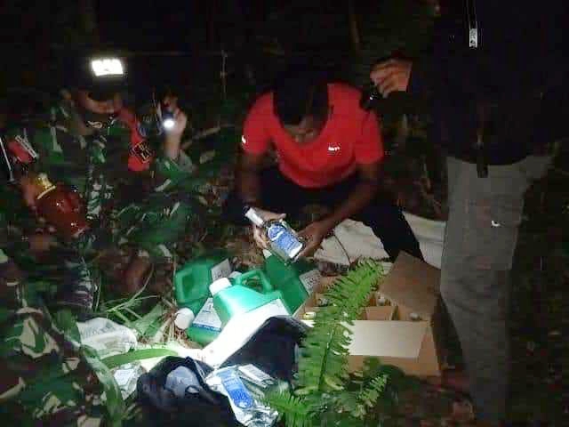 “Setelah diperiksa, ternyata karung yang berlapis dua tersebut berisi 12 Botol Miras Jenis Vodka, 12 Botol Miras Arak Guci dan 3 Jerigen racun rumput sebanyak 12 Liter,” jelas Dansatgas