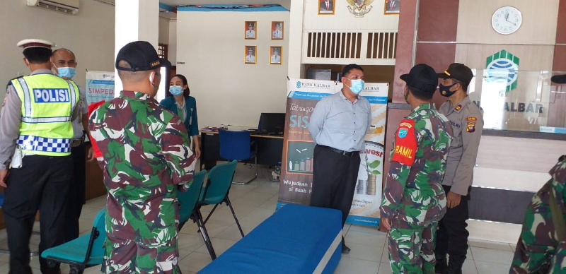 Mempawah Hulu – Anggota Polsek Mempawah Hulu Bersama Anggota Koramil 07 Karangan Bersama sama melakukan Operasi Yustisi di Pasar Karangan dan tempat pelayanan publik di Bank Kalbar dan Bank BRI,Selasa (20/10/2020) Siang.