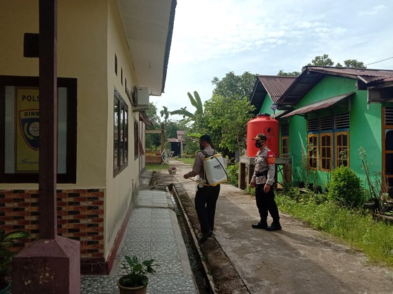 Mempawah Hulu – Terkait dengan Penyebaran Covid-19 yang cukup meresahkan masyarakat. Berbagai upaya dilakukan guna mengantisipasi penyebaran virus tersebut. Seperti yang dilakukan oleh Polsek Mempawah Hulu yang ikut serta menjaga pola hidup sehat dan penyemprotan desinfektan di areal Kantor Polsek Mempawah Hulu. Jumat(06/11/2020).