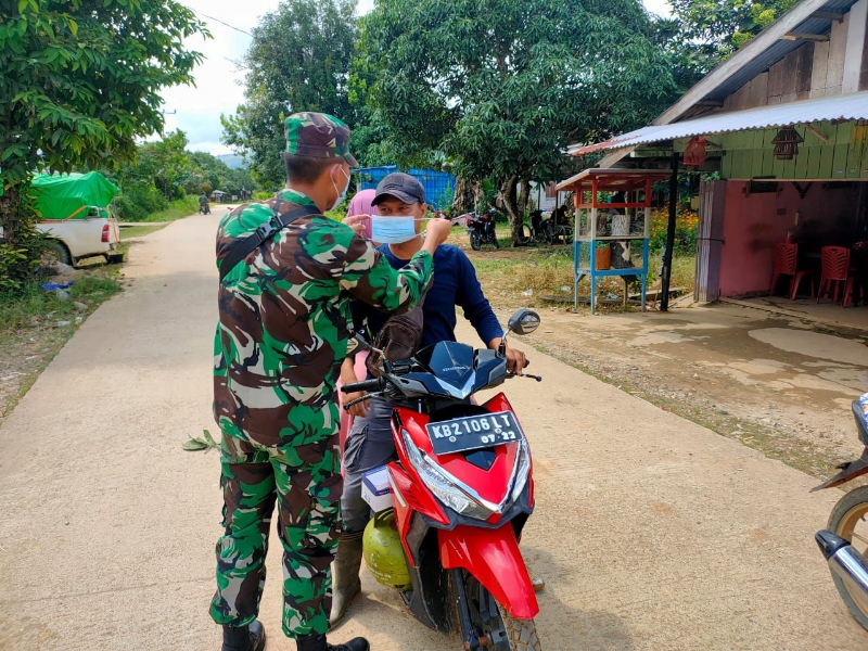 Dandim 1206/Psb, Lekol Inf Basyaruddin, S.S., mengatakan pembagian masker ini selain untuk melindingi masyarakat sekaligus bagian dari kegiatan pencanangan Satgas Desa Tangkal Covid-19.