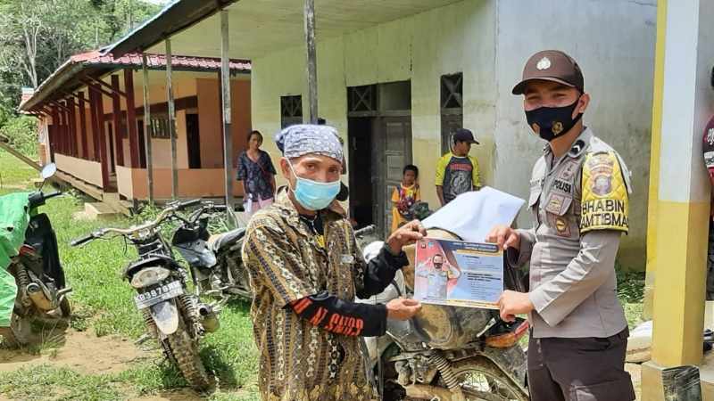 MERANTI – Kamis (19/11/2020) siang, Bhabinkamtibmas Desa Tahu, Bripda Warant Chrisstopernt melaksanakan himbauan untuk selalu menggunakan masker kepada seorang kakek di Dusun Tahu Desa Tahu Kecamatan Meranti Kab Landak.