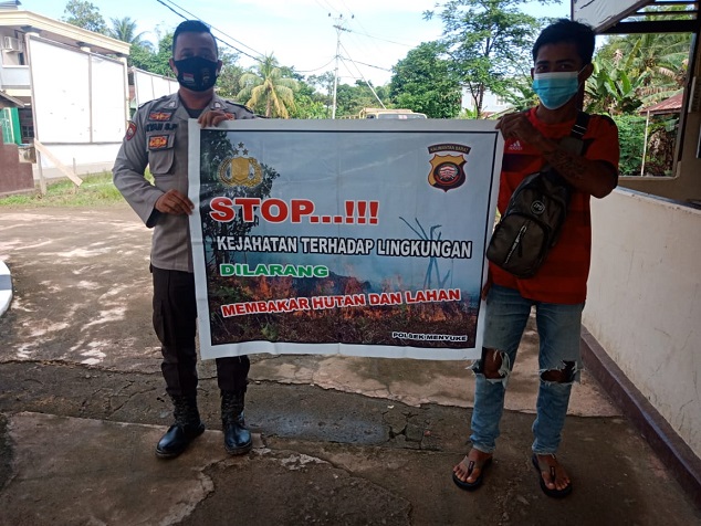 Bripka Rian Sukma Putra menyampaikan himbauan kepada warga tentang larangan untuk tidak membakar hutan dan lahan karena akan ada berdampak pada kesehatan terutama pada pernapasan akan tergangu oleh asap yang di timbul akibat dari kebakaran hutan dan lahan tersebut.