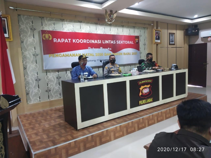 Landak – Dandim 1201 Letkol Inf. Dwi Agung Prihanto menegaskan jajarannya siap membantu kepolisian mengamankan perayaan Natal dan Tahun Baru di Kabupaten Landak. Penegasan itu disampaikan Letkol Agung saat menghadiri rapat lintas sektoral pengamanan Natal dan Tahun Baru di aula Mapolres Landak, Kamis (17/12/2020).