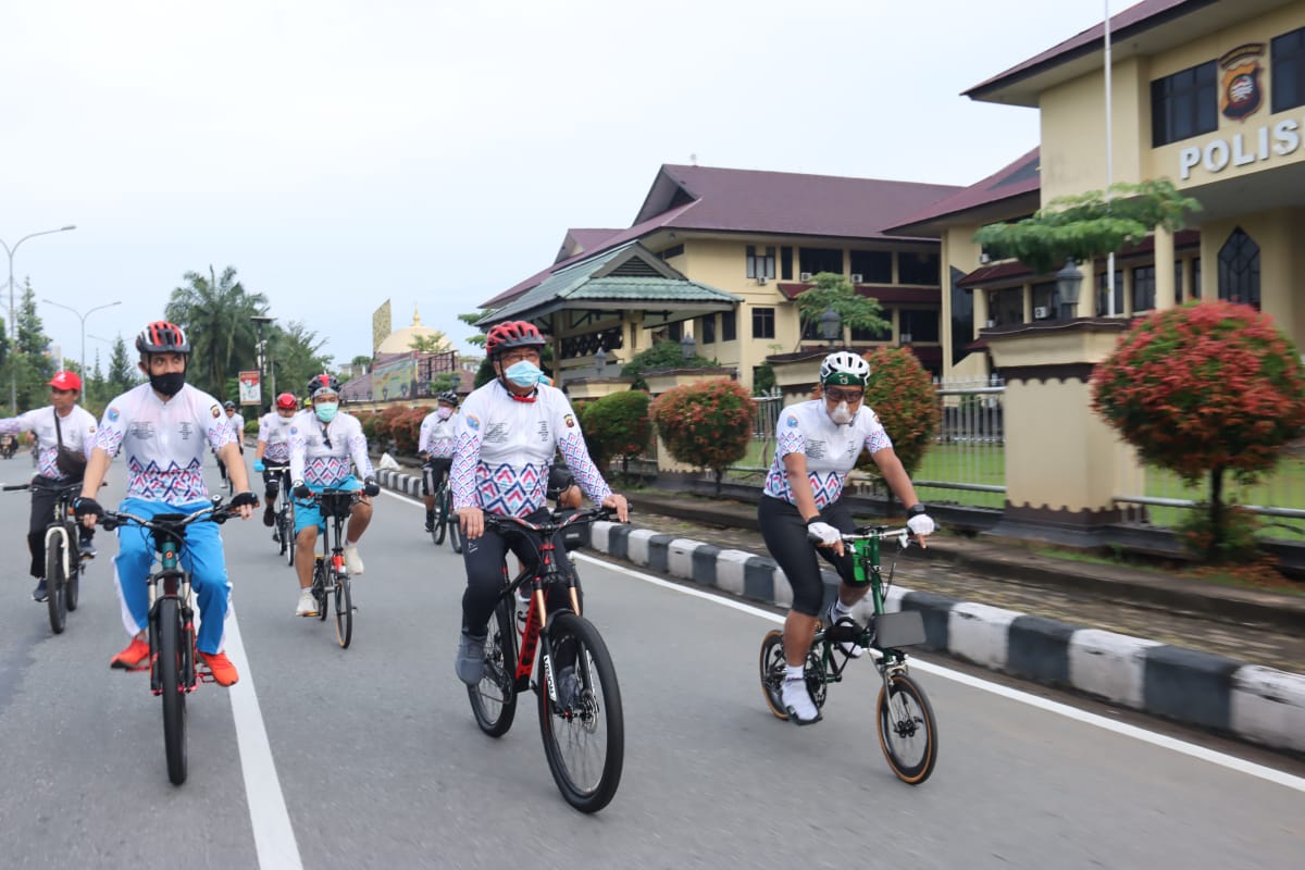 Pontianak, Jum’at (29/1/21) – Demi menjaga kesehatan dan kebugaran tubuh, Panglima Kodam XII/Tanjungpura, Mayjen TNI Muhammad Nur Rahmad bersama Kapolda Kalbar, Irjen Pol R. Sigid Tri Hardjanto, Sekda Kalbar, A.L Leysandri dan unsur Forkopimda Provinsi Kalbar serta para pejabat utama TNI-Polri di Pontianak melaksanakan gowes bersama di Kota Pontianak.
