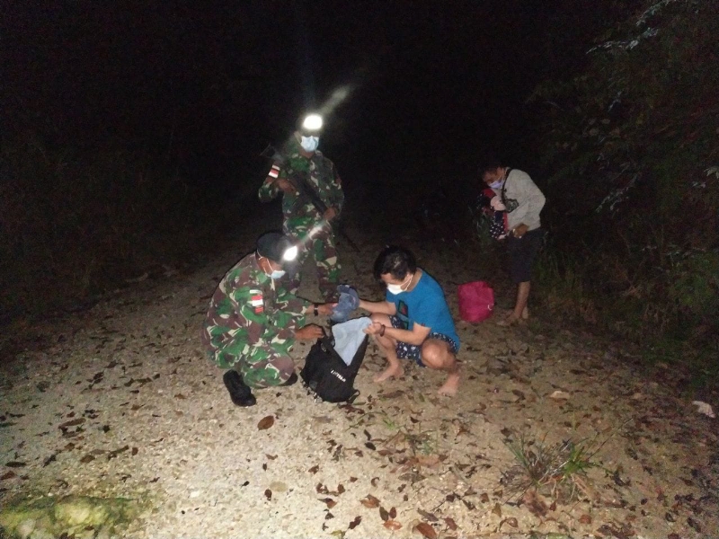 Sanggau, Senin (1/2/21) – Dua Pos Satgas Pamtas Yonif 642/Kapuas mengamankan Pekerja Migran Indonesia (PMI) saat melewati jalur tikus sektor Pos Sajingan Terpadu wilayah Kabupaten Sambas dan Pos Kumba Semunying, Kabupaten Bengkayang.