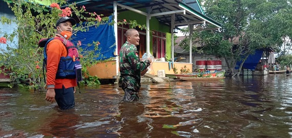 Sambas, Rabu (10/2/21) – Bantuan terhadap warga terdampak bencana banjir di Dusun Sajingan Kecil, Desa Semanga, Sejangkung, Sambas terus berdatangan. Untuk itu, Babinsa Semanga, Koramil 1208-02/Sejangkung, Serda Miswal mendampingi Relawan Siap Peduli Kemanusiaan Pontianak mendistribusikan Sembako kepada warga korban banjir.