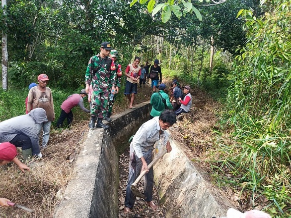 “Ada laporan ke kami dari masyarakat, masalah irigasi ini perlu ditindak lanjuti. Karya bakti ini melibatkan masyarakat setempat,” ujar Serma Agus Tri, Babinsa Menjalin.