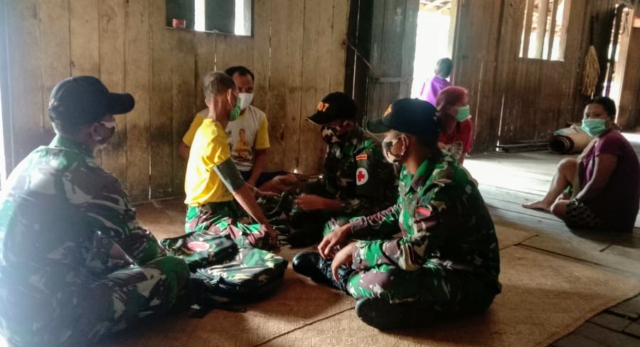 Kapuas Hulu, Rabu (24/2/21) – Tingkatkan mutu kesehatan masyarakat perbatasan, Satgas Pamtas Yonif 407/Padma Kusuma, Pos Kapar berkeliling kampung berikan pelayanan kesehatan kepada warga di Dusun Kapar, Desa Senunuk, Kecamatan Batang Lupar, Kabupaten Kapuas Hulu.