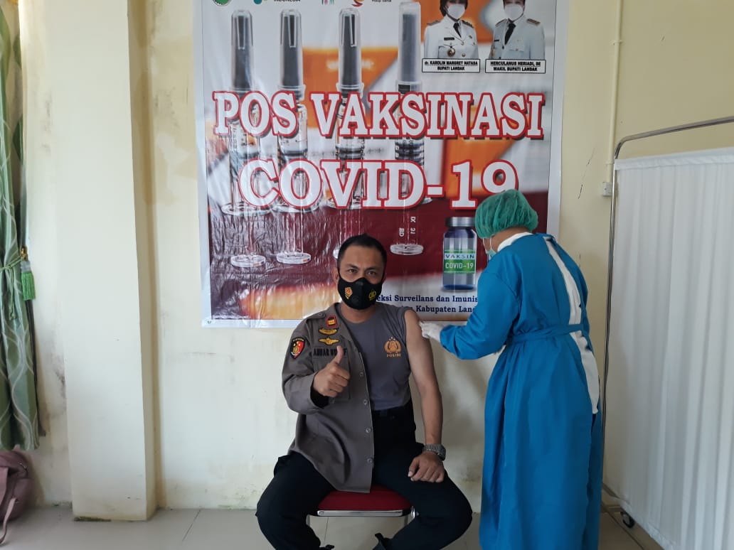 Kapolsek mengatakan pelaksanaan vaksinasi Covid 19 ini dilakukan sebagai salah satu upaya mendukung kebijakan pemerintah dalam rangka memutus mata rantai penyebaran Covid-19.