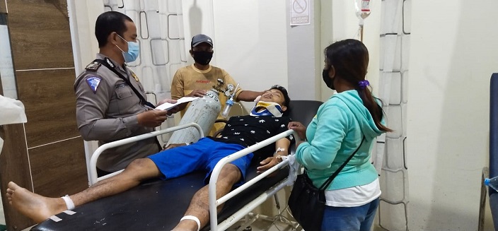 Atas kejadian tersebut, Pengendra sepeda motor vario RUDI (39), Alamat Samalantan,, Kab. Bengkayang dan yang di bonceng Taupik (58) Mengalami kaki kiri dan kana serta tangan luka lecet.