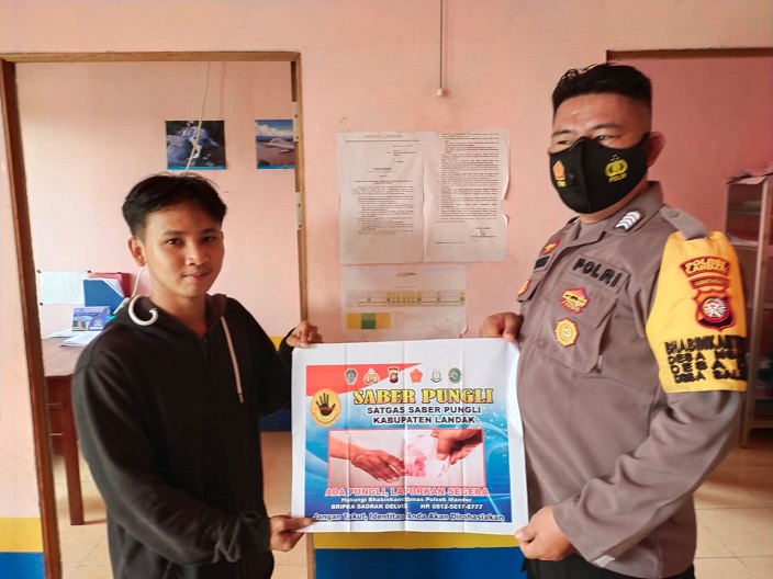 MANDOR – Untuk mencegah dan memerangi terjadinya Pungutan liar (Pungli) di Wilayah Kecamatan Mandor, Bhabinkamtibmas Polsek Mandor mensosialisasikan Stop Pungli kepada Gorry Warga desa Kayu Tanam Kecamatan Mandor Kabupaten Landak. Rabu (14/04/2021).