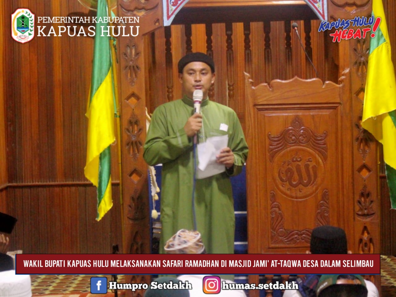 Dalam sambutannya, Wakil Bupati Kaouas Hulu mengajak kepada seluruh jamaah agar memanfaatkan dengan baik momen ramadhan kali ini karena Ramadan atau puasa adalah wajib puasa adalah rukun islam ke 4 ( empat ) maka puasa itu wajib bagi umat islam kata wakil.