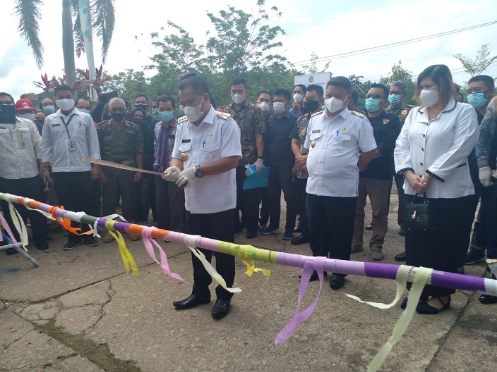 Penyambutan Bupati dan Wakil Bupati Baru dimulai dengan ritual adat Dayak dengan pancung buluh muda, injak telur dan dilanjutkan dengan ritual adat Melayu.