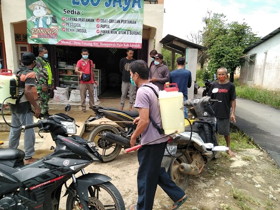 ” Kami para Babinsa sebagai aparat kewilayahaan harus terlibat langsung dalam setiap kegiatan di desa,untuk membantu penanganan virus covid 19. untuk itu saya bersama seluruh perangkat desa dan relawan covid 19 desa,melaksanakan penyemprotan disinfektan di setiap pemukiman warga,tempat beribadah,tempat umum,jelasnya