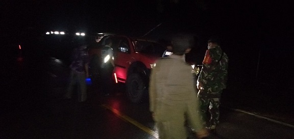 Landak (Landak News) -Tanpa mengenal lelah Babinsa Koramil 11/Ngabang Melaksanakan penyekatan Cek!!!Point Dini hari di Jl jelimpo-Sanggau guna memutus mata rantai covid-19,Jumat(7/5/2021)