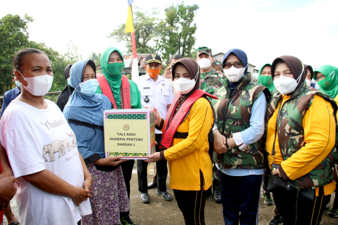 Ny. Ely Nur Rahmad mengatakan, kegiatan ini merupakan wujud kepedulian Dharma Pertiwi Daerah L untuk membantu masyarakat terdampak Covid-19, diharapkan dapat meringankan beban masyarakat. (Pendam XII/Tpr)