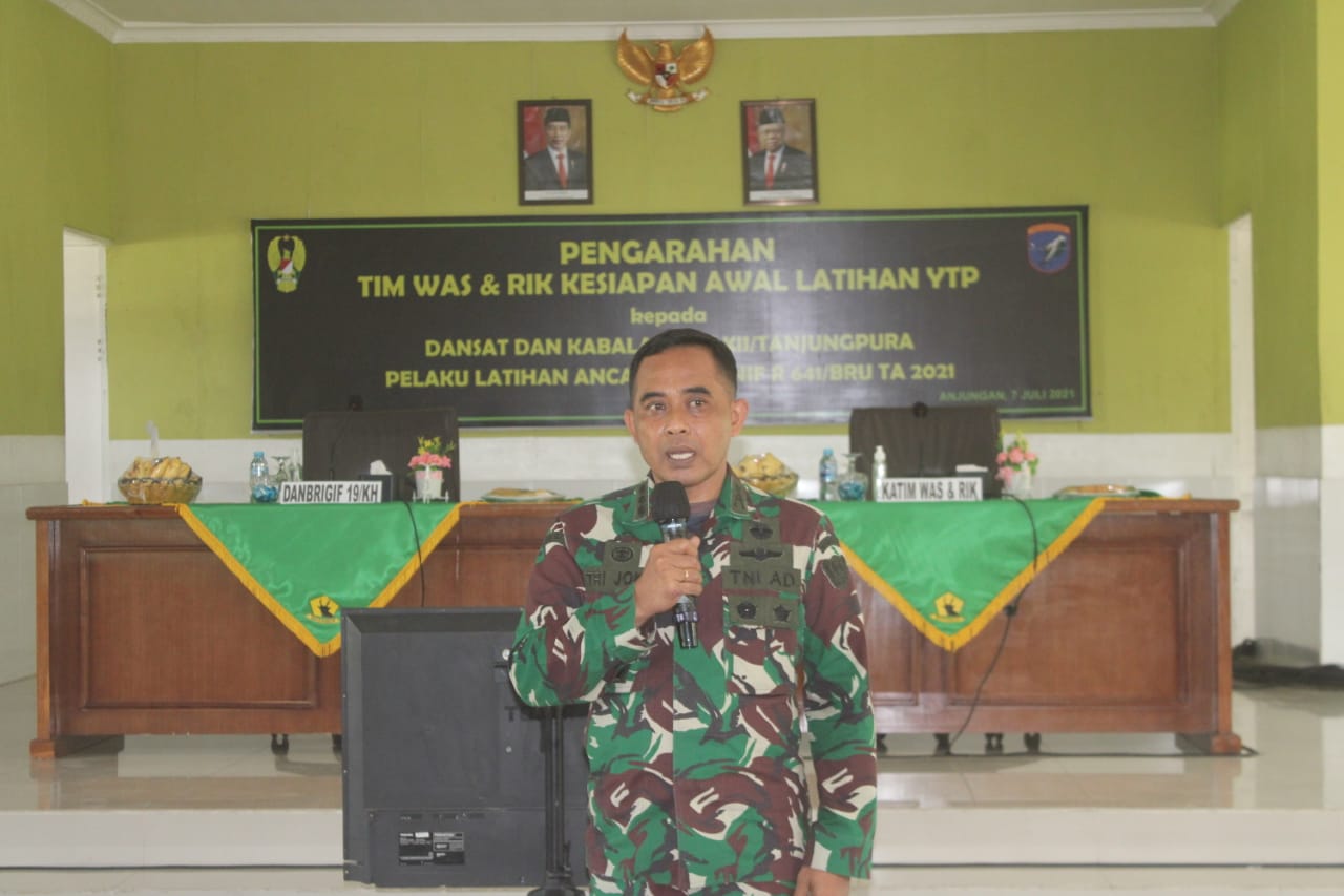 Danbrigif 19/KH, Kolonel Inf Fikri Ferdian, S.Sos., M.M. dalam kesempatan tersebut mengatakan, tujuan dilaksanakan kegiatan ini adalah untuk melaksanakan Pengawasan dan Pengecekan Kesiapan Lat Ancab YTP R 641/BRU serta untuk memastikan sejauh mana kesiapan satuan.
