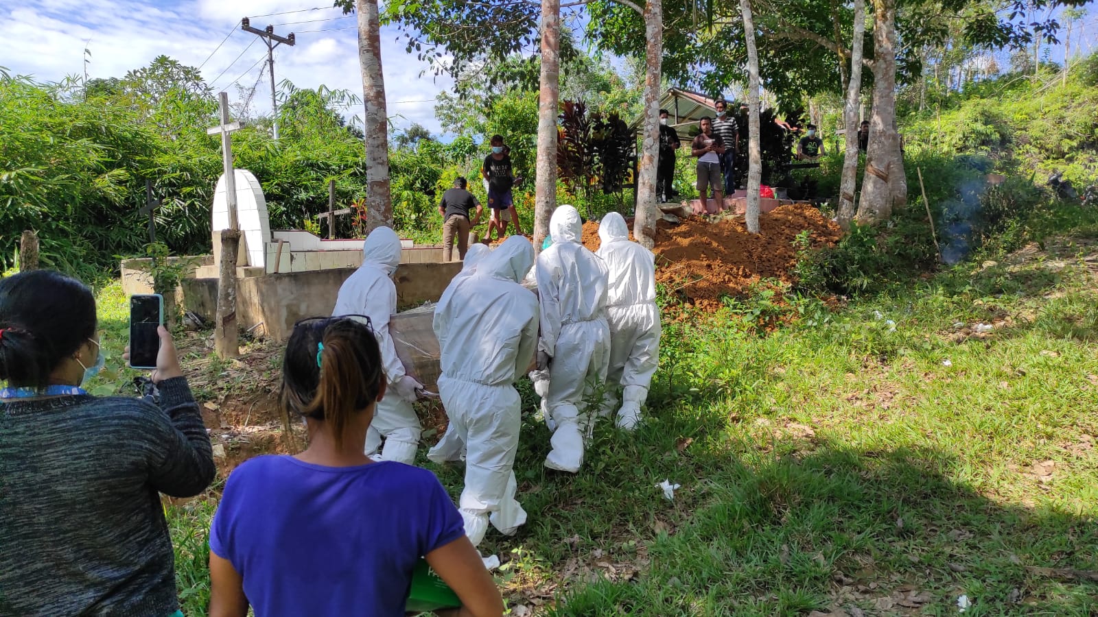 Bahwa untuk rangkaian kegiatan pemakaman Bhabinkamtibmas dan Babinsa melaksanakan imbauan terhadap keluarga dan warga sekitar, Penggalian lubang pemakaman oleh warga masyarakat sekitar mengunakan Pemakaian APD oleh relawan pemakaman, Mobil pembawa jenazah dari RSU Landak Nopol KB 9038 LD, Penyemprotan disinfektan