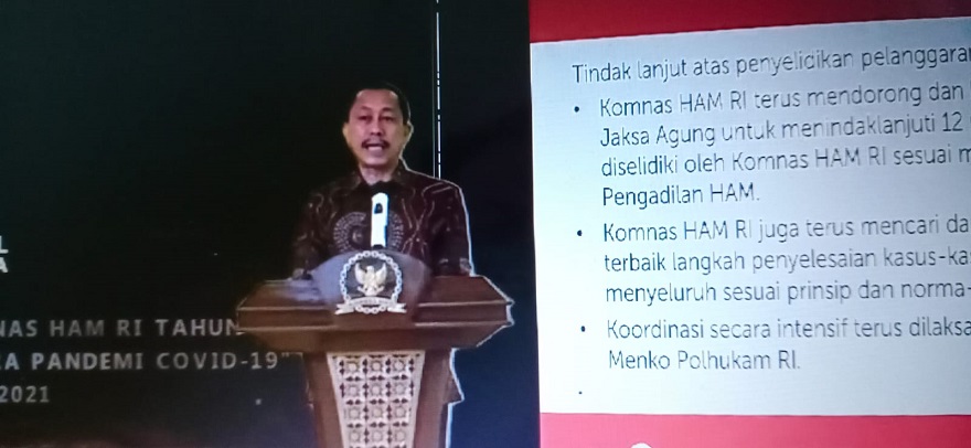 “Komnas HAM RI juga terus mencari dan mengusulkan format terbaik langkah penyelesaian kasus-kasus tersebut secara menyeluruh sesuai prinsip dan norma-norma HAM. Koordinasi secara intensif terus dilaksanakan bersama dengan Menko Polhukam RI,” tambahnya.