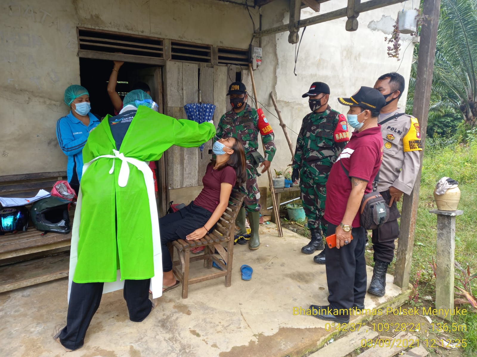 Menyuke, Landak – Personil Koramil Menyuke dan Personil Polsek Menyuke melakukan pengamanan Sabtu (04/09/21), sekitar pukul 09.30 wib dimulainya kegiatan Tracer/Tracing terhadap terkonfirmasi Covid-19 bertempat di Dusun Insang dan Dusun Parigi Desa Semade Kecamatan Banyuke Hulu.