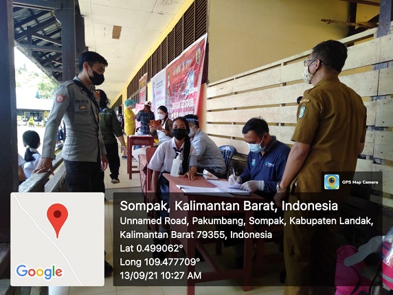 Sompak , Landak – Sebanyak 60 pelajar SMPN 1 sompak mengikuti kegiatan Vaksinasi Covid-19 Dosis ke- 1 jenis Vaksin Coronavac (sinovac) yang dilaksanakan oleh Puskesmas sompak. Senin (13/09/21).