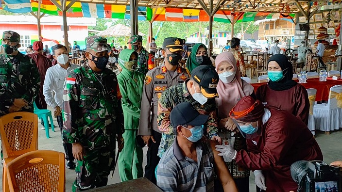 Vaksinasi massal ini diikuti sebanyak 400 warga, menyasar usia 18 sampai dengan 60 tahun. Kegiatan vaksinasi mendapat peninjauan langsung dari Bupati Sambas, Dandim 1208/Sbs dan Kapolres Sambas serta unsur Forkopimda lainnya.