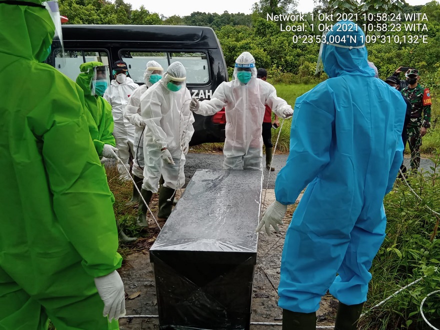 Prosesi pemakaman dilakukan dengan menggunakan protokol penanganan Covid-19. Jum’at (01/10/21).
