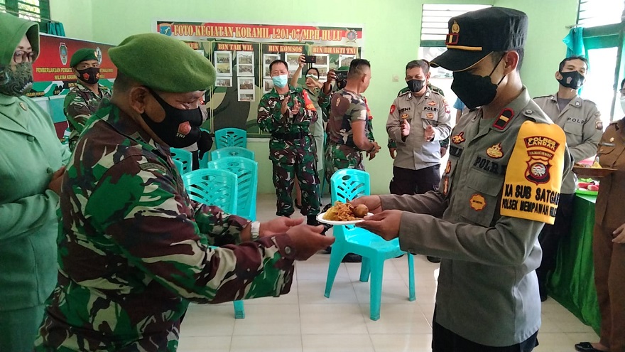 Dalam kesempatan tersebut, Kapolsek menyerahkan nasi tumpeng sebagai kado di Hari Ulang Tahun TNI Ke 76, seraya mengucapkan semoga dalam momentum peringatan Hari Ulang Tahun TNI Ke-76 ini,TNI semakin jaya, dan dicintai rakyat.
