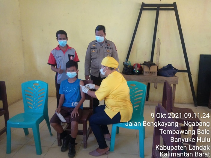 Vaksinasi Covid-19 tersebut hari Sabtu tanggal 09 Oktober 2021 sekitar jam 09:00 wiba di Sekolah SMPN 03 Banyuke Hulu, Vaksinasi Covid-19 Sinovac Tahap ke-2 bagi Siswa-siswi SMPN 03 Banyuke Hulu Desa Kampet yang berjumlah sekitar 69 orang.
