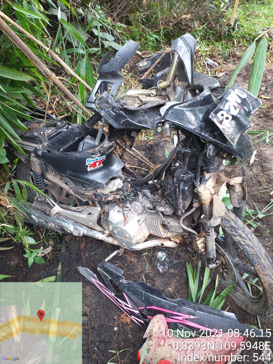 Sesampainya di Tempat Kejadian Perkara (TKP) tepatnya dijalan Raya Ngabang – Pontianak, Dusun Asong Desa Aur Sampuk, Kec. Sengah Temila, Kabupaten Landak dengan kondisi jalan yang menurun dan menikung, pengendara sepeda motor Supra X 125 Nantalius (26)th Ban Motornya slip hingga terjatuh.