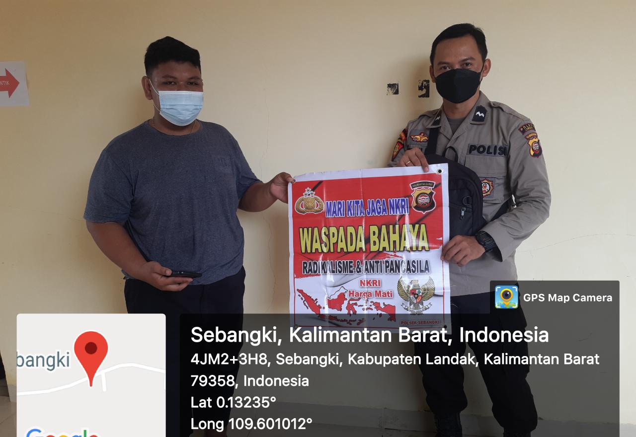 Sebangki (Landak News) – Masyarakat tidak boleh acuh tak acuh terhadap terorisme dan aksi paham radikalisme karena ini merupakan paham yang merusak negara dan ketentraman publik serta membahayakan hak asasi manusia, Supaya tidak warganya di Kecamatan Sebangki mengikuti aliran tersebut yang dapat mengakibatkan hancurnya Bhinneka Tunggal Eka, Anggota Polsek Sebangki Aipda Tahta sebagai Kanit Sabhara Dengan Berbekal Banner Mengajak warganya untuk bersama sama perangi terorisme khususnya jangan sampai terjadi di daerah Kecamatan Sebangki meskipun di masa pandemi virus Corona. Minggu ( 14/11/2021 )
