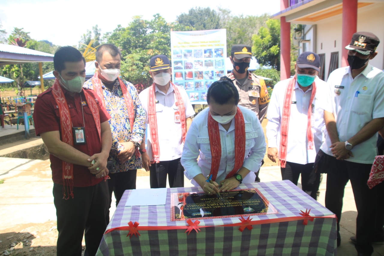 LANDAK – Bupati Landak Karolin Margret Natasa melakukan kunjungan kerja ke Desa Pahauman, Kecamatan Sengah Temila dalam rangka meresmikan Penyediaan Air Minum dan Sanitasi Berbasis Masyarakat (PAMSIMAS) yang didampingi Kepala Dinas PUPRPera Kabupaten Landak, Kepala Dinas Kesehatan Kabupaten Landak, Kepala Dinas Kesehatan Kabupaten Landak, Kepala Dinas Pemberdayaan Masyarakat dan Pemerintahan Desa Kabupaten Landak, Forkopimcam Sengah Temila dan Kepala Desa Pahauman, rabu (08/12/21).