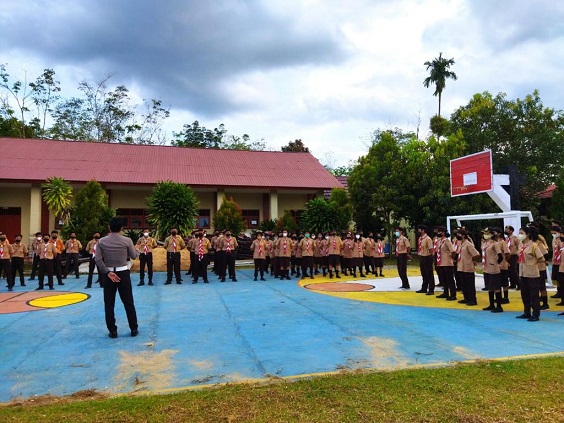 Mempawah Hulu (Landak News) – Personil Polsek Mempawah Hulu Briptu M Prayogi berikan pelatihan Pramuka di SMAN 1 Mempawah Hulu, Jumat (18/02/22).