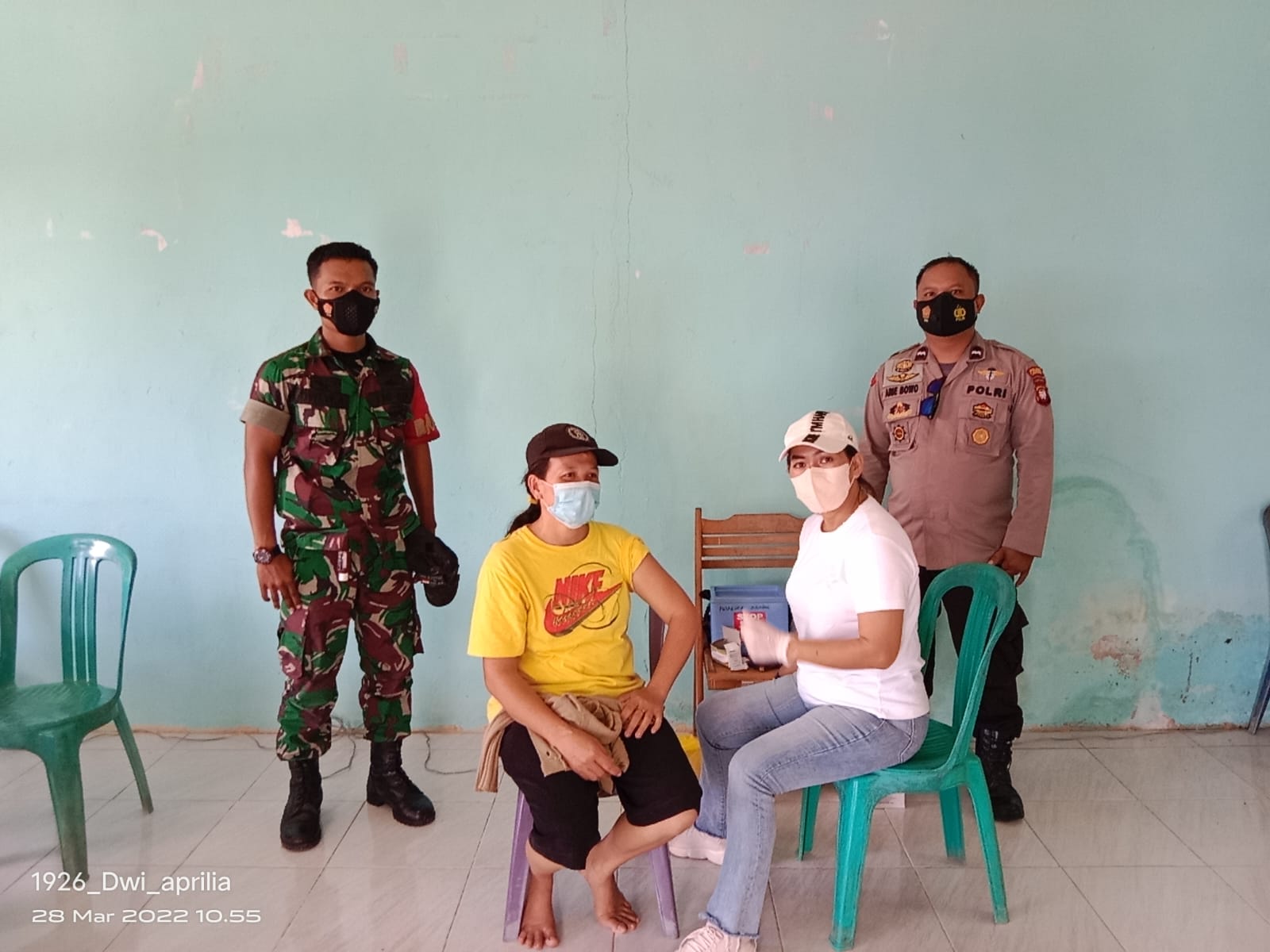 “Kehadiran Babinsa bersama Bhabinkamtibmas tidak hanya melakukan pengamanan tapi juga melakukan pendampingan kepada masyarakat yang akan disuntik guna memberika semangat dan dukungan moril, agar tidak takut ketika di suntik” kata Kades Sekilap.
