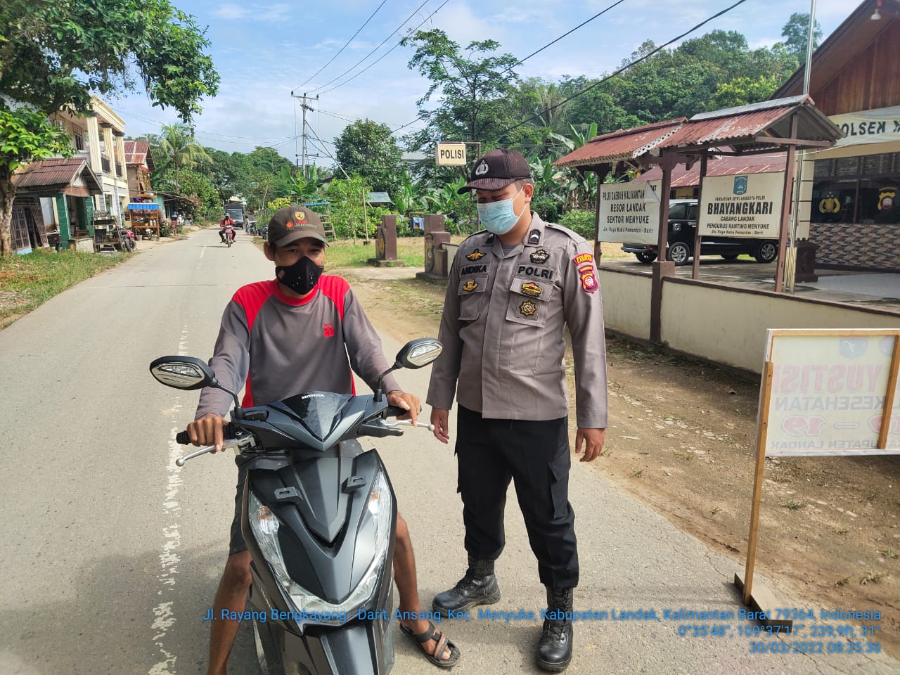 MENYUKE- Anggota Polsek Menyuke kembali menggelar kegiatan Operasi Yustisi penegakan protokol kesehatan COVID-19 yang dilaksanakan di depan Mako Polsek Menyuke Rabu (30/3/2022).